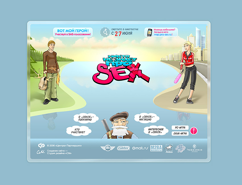 К премьере фильма мы с нуля отрисовали и заскриптовали «мультяшный» флеш-сайт с неформальными текстами и подробной информацией о сюжете, актерах, конкурсах и играх по мотивам.
